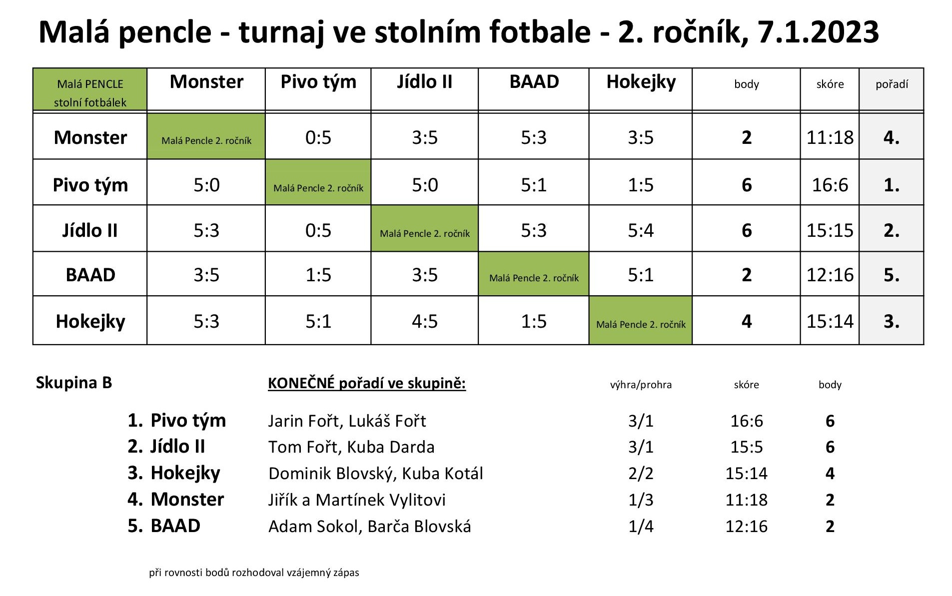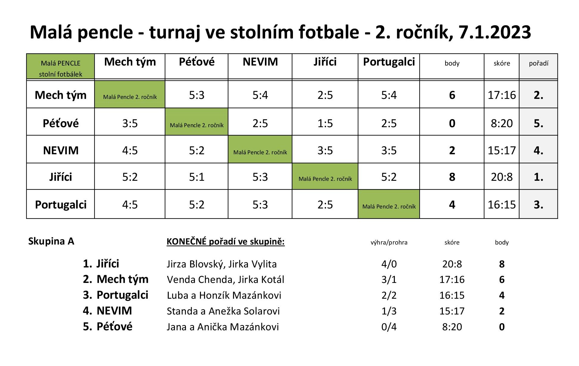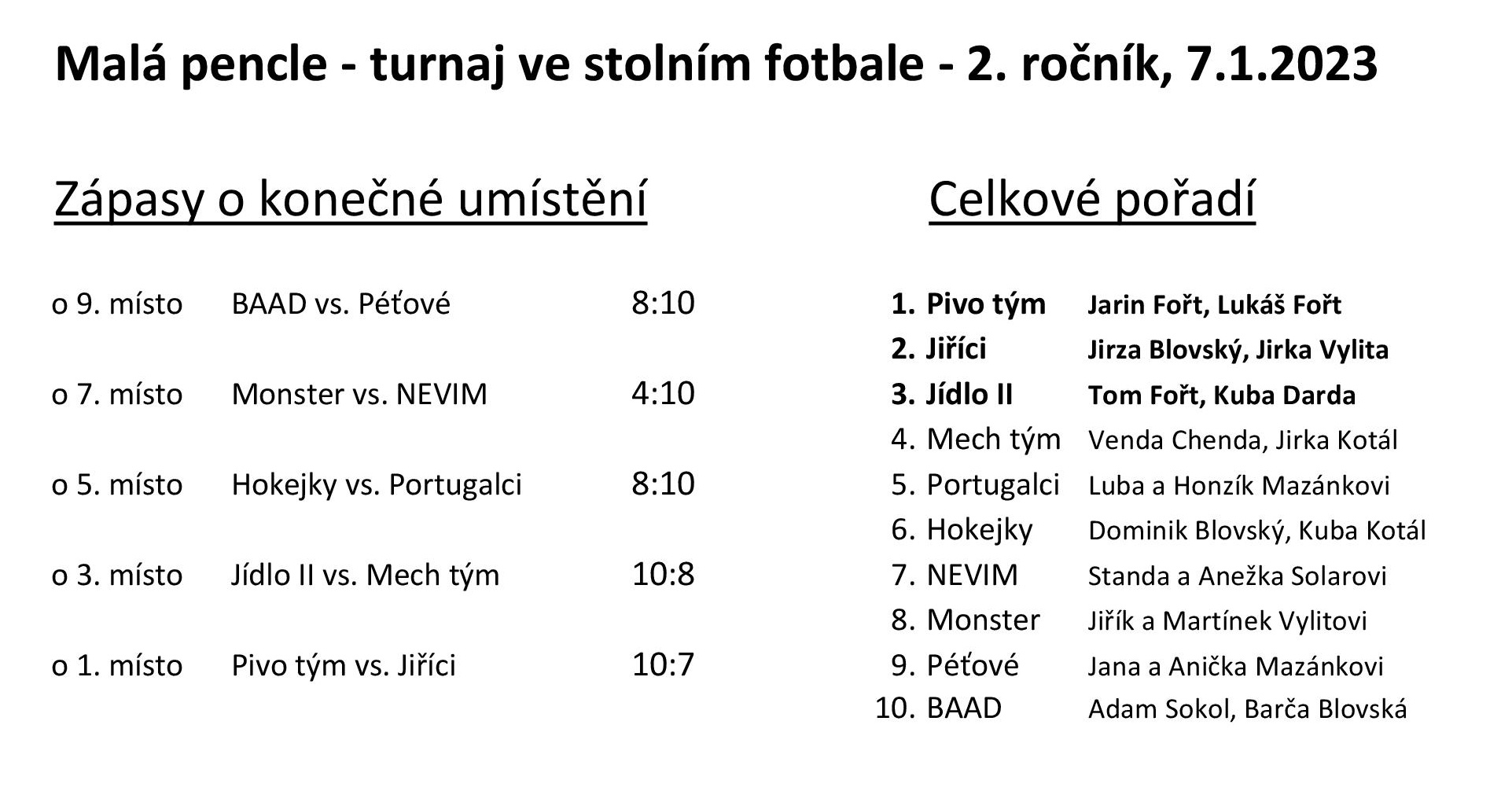 Malá Pencle 2023 16. 1. 2026 Miniturnaj ve stolním fotbálku ovládl v roce 2023 opět "Pivotým" Zpět Sdílejte článek: Sdílet na Facebook Sdílet na Facebook