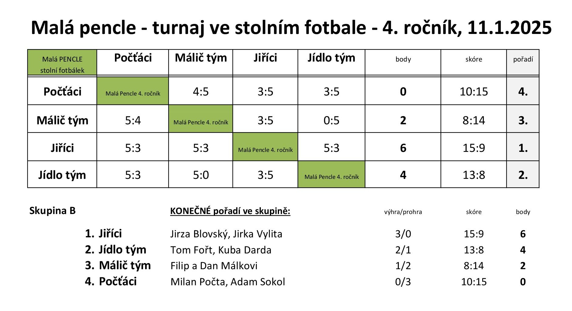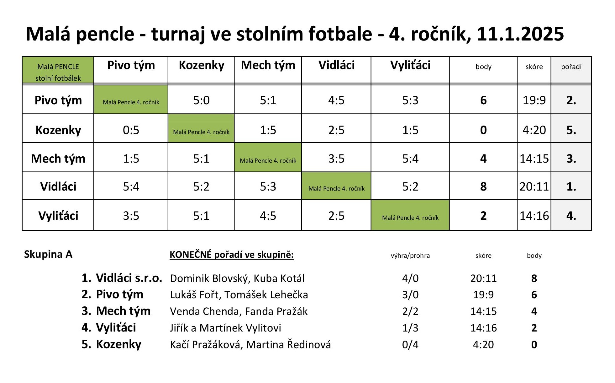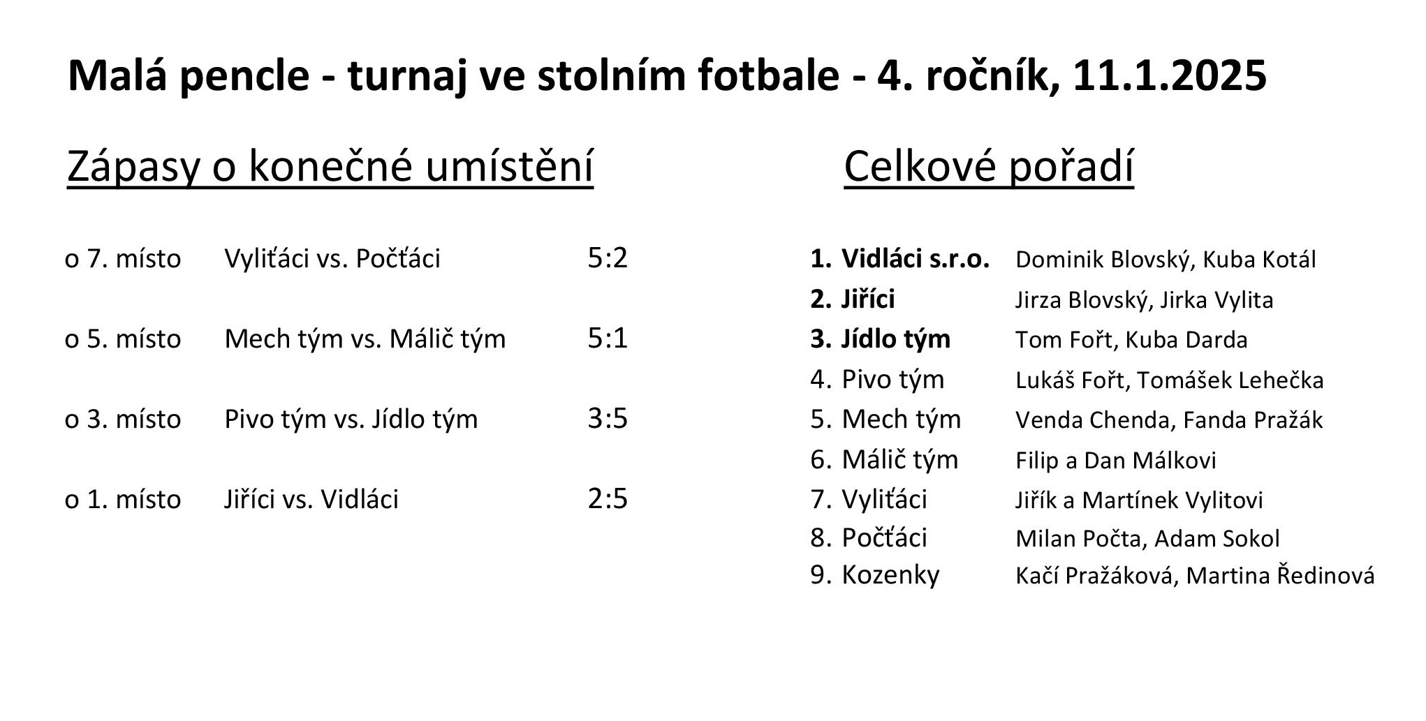 Malá pencle 2025 16. 1. 2026 Miniturnaj ve stolním fotbálku Malá pencle 2025 ovládli mladíci "Vidláci s.r.o." Zpět Sdílejte článek: Sdílet na Facebook Sdílet na Facebook